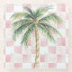 Chic Pink White Squares Gold Palm Tree Glass Coaster