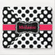 Chic Polka Dots Hot Pink Black White Custom Name Mouse Mat