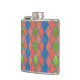 A chic Hip Flask, with a Faux-patchwork pattern of diamond shapes in Poppy Red, Leaf Green and Royal Blue. Part of the Posh & Painterly 'Poppy Fields' collection.