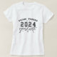 A chic personalised T-Shirt saying "Proud Parent of a 2023 graduate". A combination of serif and calligraphy font.