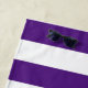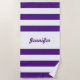 Lounge at the beach, pool or on the boat in style with this chic purple and white striped beach towel featuring your name in modern script text over a thicker white accent stripe. Have fun changing the teal text and stripe colours to further match your style.