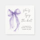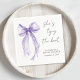 Elegant napkins for your bridal shower that featuring a hand-painted watercolor of a purple coquette bow, "She's tying the knot" in a chic calligraphy script, and the bride's name and the shower date in simple modern lettering.