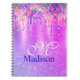 Chic ombre purple pink ombre dripping glitter monogram Notebook. Cool for school, work or as a journal or diary! Personalise it with your name or any desired text you like.. Whether for valentines day, Christmas or as a gift in general this design will make a great gift idea for any girl who loves sparkly glittery cool things. PLEASE NOTE: These are flat printed graphics - no real glitter, jewels or raised parts
