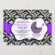 Chic Purple Polka Dot Damask Baby Shower Invite