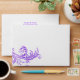 Custom special occasion invitation envelope in white, with a lavender colour inside. Elegant purple baroque flourishes decorate the front and back of the envelope. Purple coloured return address, on the back flap, is ready to personalise. Lovely finishing touch to your invitations.