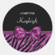 Chic Purple Zebra Print FAUX Glitz Bow With Name Classic Round Sticker