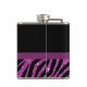 Chic Purple Zebra Print FAUX Glitz Bow With Name Hip Flask