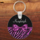Your teenage girl will feel immersed in girly luxury with this chic designer purple and black glitter zebra print basic keychain with a sequin sparkle ribbon tied into a luxe bow. Personalise this glitz and glam animal print fashion design by adding her name. Flat printed image, not actual glitter or ribbon.