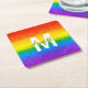 These faux glitter custom paper coasters will make a statement and show your support. The chic rainbow striped design includes shades of red, orange, yellow, green, blue and purple with a monogram initial in white and name in modern black script for you to personalise. Show your pride!