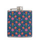 Chic Rangoli Flowers Polka Dots on Blue Hip Flask