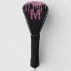 Play your game of gold in style with this glitter and glam golf head cover. This modern design features a border at the top of faux raspberry pink dripping glitter with sparkles. In the centre is your monogram initial with your name in a modern hand lettered pink script on a background of black. A unique girly gift for that golf lover in your life. Designed just for you by Extreme Tees!