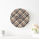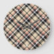 Chic Red Beige Black White Plaid Stripes Pattern Large Clock