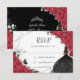 Chic Red Floral Roses Silver Quinceañera Princess RSVP Card