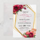 Chic red grey floral wedding invitation