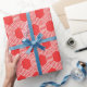 Chic red honeycomb geometric patterns monogram wrapping paper