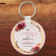 Elegant chic pink red burgundy and faux gold wedding keychain with beautiful flowers and green leaves. An enchanting fusion of elegance and romantic charm. These beautiful invitations are in rich pink and red hues. The calligraphy is elegant and chic and can be easily customised. Romantic and modern floral wedding invitations with classic colours that never go out of style.