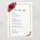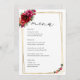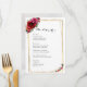 Chic red pink floral and faux gold wedding menu