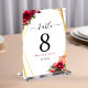 Elegant chic pink red burgundy and faux gold wedding table number card with beautiful flowers and green leaves. An enchanting fusion of elegance and romantic charm. These beautiful invitations are in rich pink and red hues. The calligraphy is elegant and chic and can be easily customised. Romantic and modern floral wedding invitations with classic colours that never go out of style.