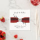 Lovely special occasion paper napkins, with graphics of a diamond like heart on a red damask ribbon, with black flourishes. Personalise the black text for your event.