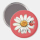 Chic Red White Daisy Flower Ladybug Love Magnet