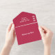 This Elegant, All in One trifold wedding invitation combines a unique retro-modern look with a vibrant viva magenta colour theme. The design features a stylish retro font along with the monogram of the bride and groom's initials and a quote that can be also edited for personal touch. The invitation has a generated QR code for your wedding website and RSVP information.