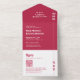 Chic Retro Bold Hot Pink Monogram QR Code Wedding All In One Invitation
