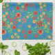 Chic Retro Floral Miniprint on Teal Kitchen Towel