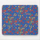 Chic Retro Floral Print on Blue Mousepad