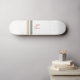 A minimalist monogram design with large typography initials in a classic font with your name below and chic retro rainbow colored stripes.