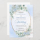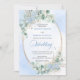 Make your special day unforgettable with this elegant watercolor wedding invitation, thoughtfully designed to shine with Zazzle’s premium print quality. Featuring soft pastel blue hydrangeas, delicate eucalyptus and greenery foliage, and a refined gold glitter oval frame, this invitation blends timeless romance with modern sophistication.