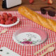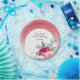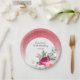 Elegant birthday paper plate features a vibrant watercolor rose flower with leafy greenery on a arch shape background with red glitter. Ideal party supplies for woman and girl's birthday themed party. Matching Items in our shop for a complete party theme.