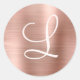 Chic Rose Gold Brushed Metal Pink Monogram Classic Round Sticker