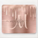 Chic Rose Gold Dripping Brushed Metal Blush Script Mouse Mat