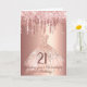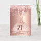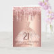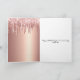 Chic Birthday card features a rose gold background with dripping glitter and a gorgeous dress.
