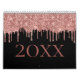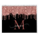 Chic Rose Gold Glitter Blush Monogram Name Black Calendar