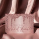 Navy Blue Rose Gold Sparkle Glitter Maid of Honour Proposal Cards featuring faux glitter in shades of rose gold, mauve, and blush pink on an elegant metallic rose gold background. Your details, paired with our modern, chic script typography, makes this the perfect invitation for your elegant affair or destination wedding. Please contact us at cedarandstring@gmail.com if you need assistance with the design or matching products.