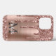 Chic Rose Gold Glitter Drips Monogram Pink Metal Case-Mate iPhone Case