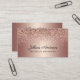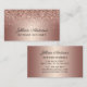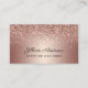 This modern professional business card is perfect for makeup artists and interior designers as well as other professions where you want a touch of glitter and glam. The design features a rose gold glitter design on the front with your name and profession in black script on faux rose gold to personalize. The back of the card is rose gold with your contact details to customize. Designed by artist Susan Coffey.