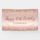 Elegant Modern Sparkle Rose gold glitter metallic Personalised Happy 50th (or ANY AGE) Birthday Party Banner. This Girly Adult feminine FIFTY (FIFTIETH) Birhday party decor featuring "Happy 50th Birthday" text in a stylish handwritten calligraphy script and custom name on blush pink or rose gold faux brushed metallic foil look background with loose glam glitter frame. Ideal for a feminine adult or girly milestone birthday celebration, this perfectly captures the essence of a modern rose gold or blush pink glitter sparkle girly birthday party. Perfect for a welcome banner or even a party decoration.