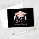Celebrate in style with this sleek graduation thank you card featuring a faux rose gold metallic graduation cap on a striking black background. White script and rose gold accents frame your class year and personalized name for a glamorous, modern look. Customize the name and year for a card that feels as special as your milestone.