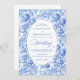 Chic Royal Blue Toile Floral Wedding Invitation