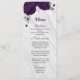 beautiful royal purple flowers and silver grey leaves elegant wedding menu.