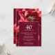 Chic Ruby Red Elegant Floral 40th Anniversary Invitation