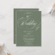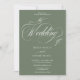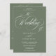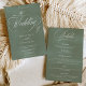 Chic and elegant sage green olive and white all in one calligraphy wedding invitation with rsvp, accommodations, details, and more info. With a beautiful brush calligraphy script.