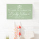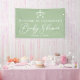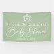 This chic, simple sage green baby shower party banner features your minimalist white typography underneath a sweet toy mobile for a baby boy or girl. Elegant gender neutral decoration.
