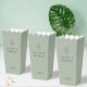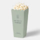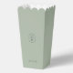 Delight wedding guests with a surprise midnight snack. This lovely monogrammed wedding favor popcorn box features couple names and monogram in a contemporary set of fonts against a sage green background. This item forms part of a full wedding suite which includes matching stationary items.