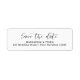 Chic Save the Date return address label for weddings featuring simple and black script calligraphy, against white background. Easily personalise these elegant return address labels with your own text.