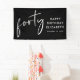Chic black 40th birthday party banner and welcome sign featuring "forty" showcased in a stylish white script and your name and the date in modern white lettering.