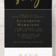 Elegant and chic black 60th birthday party all in one invitation featuring "sixty" in a large script, your name and "RSVP" in classic serif typography and the party details in simple, modern lettering, all rendered in your choice of genuine gold, silver or rose gold foil. A tear away RSVP postcard provides a convenient envelope-free response option for your guests.