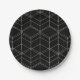 Chic Script Black & Foil Silver Geometric Pattern Paper Plate